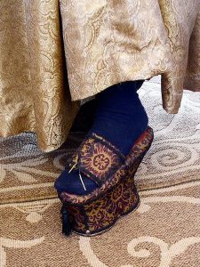 De hecho, el zapato chapín fue la más importante aportación peninsular a una tendencia que recorría toda Europa. Tenía primos cercanos como las pianelle en Italia y los chopines en Francia, lo que demuestra su popularidad continental. Su propósito era doble: en el exterior, su elevada suela de corcho o madera —que podía alcanzar hasta 50 cm— protegía los costosos vestidos del lodo; en los entornos cortesanos de interior, permitía usar vestidos más largos y ostentosos, un claro símbolo de estatus. Curiosamente, mientras en España el chapín solía quedar visible, en Italia y Francia los vestidos tendían a ocultarlo.